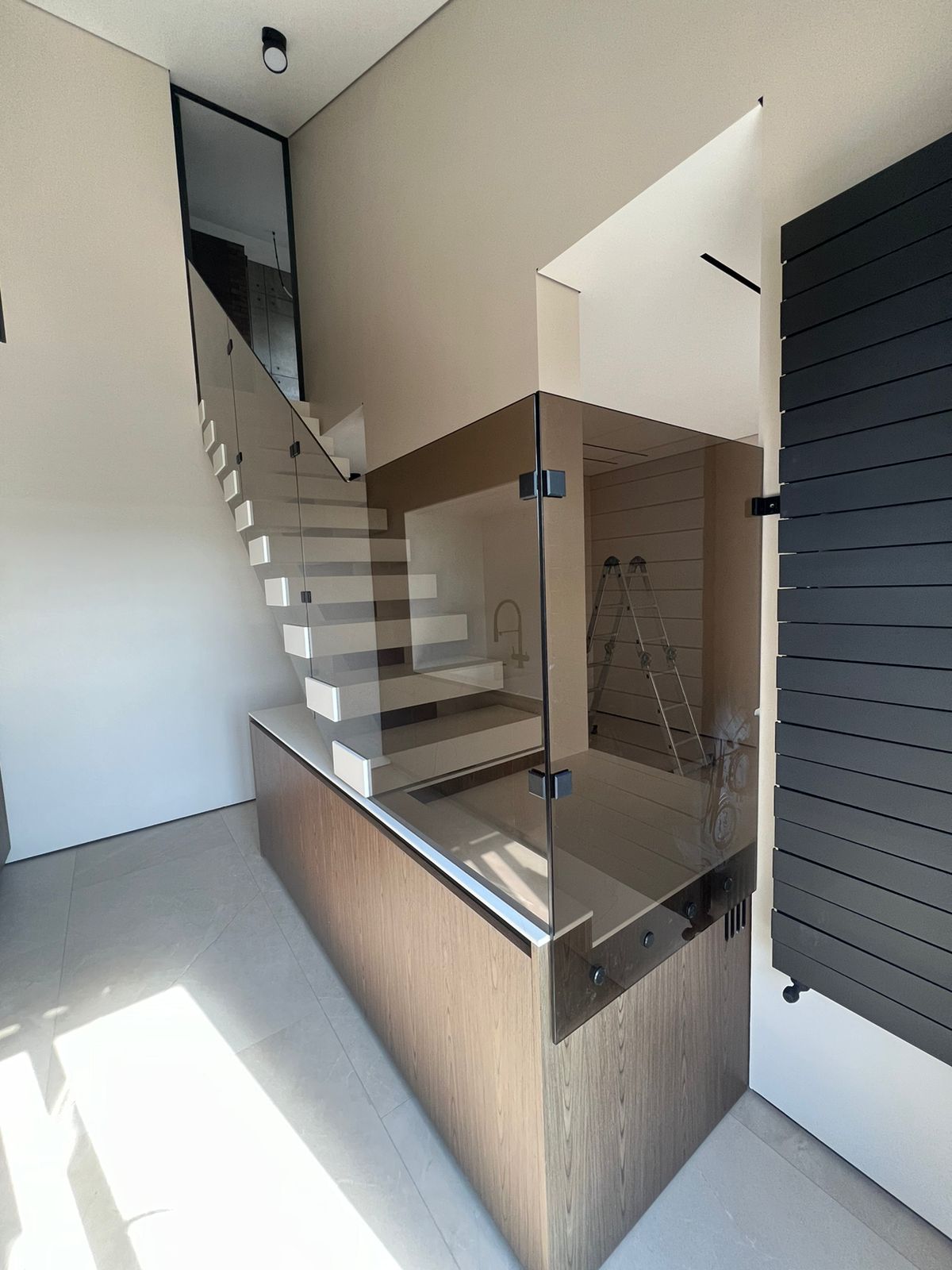 BUKOSA предлагает эксклюзивные лестницы из акрилового и кварцевого камня — идеальное решение благодаря влагостойкости и прочности.